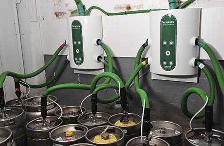 The cellar system works by chilling the beer when it leaves the keg, which Heineken said cuts energy use because the product doesn’t have to be cooled constantly.