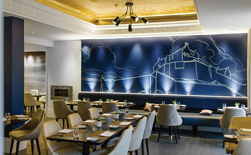 Featuring a hand-drawn mural of Edinburgh Castle by Scottish artist Nichol Wheatley in a nod to the restaurant’s location at the foot of the castle, the new-look dining area is said to enhance the Georgian townhouse’s original features.