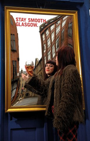 As part of the Stay Smooth, Glasgow activity, the whisky firm launched an interactive mirror, which ‘spoke’ to passers by; as people stood in front of the mirror, words appeared on the glass reminding them to ‘stay smooth’ and complimenting their look with a “typically Glaswegian turn of phrase”. Everyone who used the ‘talking’ mirror was in line to receive a voucher to redeem for a dram of Whyte & Mackay in Glasgow pubs including Blackfriars, Sloans, The Griffin, Maggie Mays and Brel.
