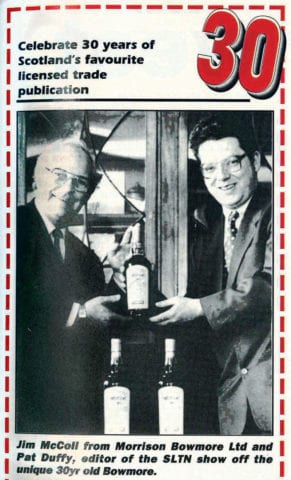 A specially-produced, bottled and labelled Thirty Year Old Bowmore was released as a competition prize over twenty years ago and the brothers managed to pick up one of only three bottles released shortly after snaring their 2016 SLTN Award.