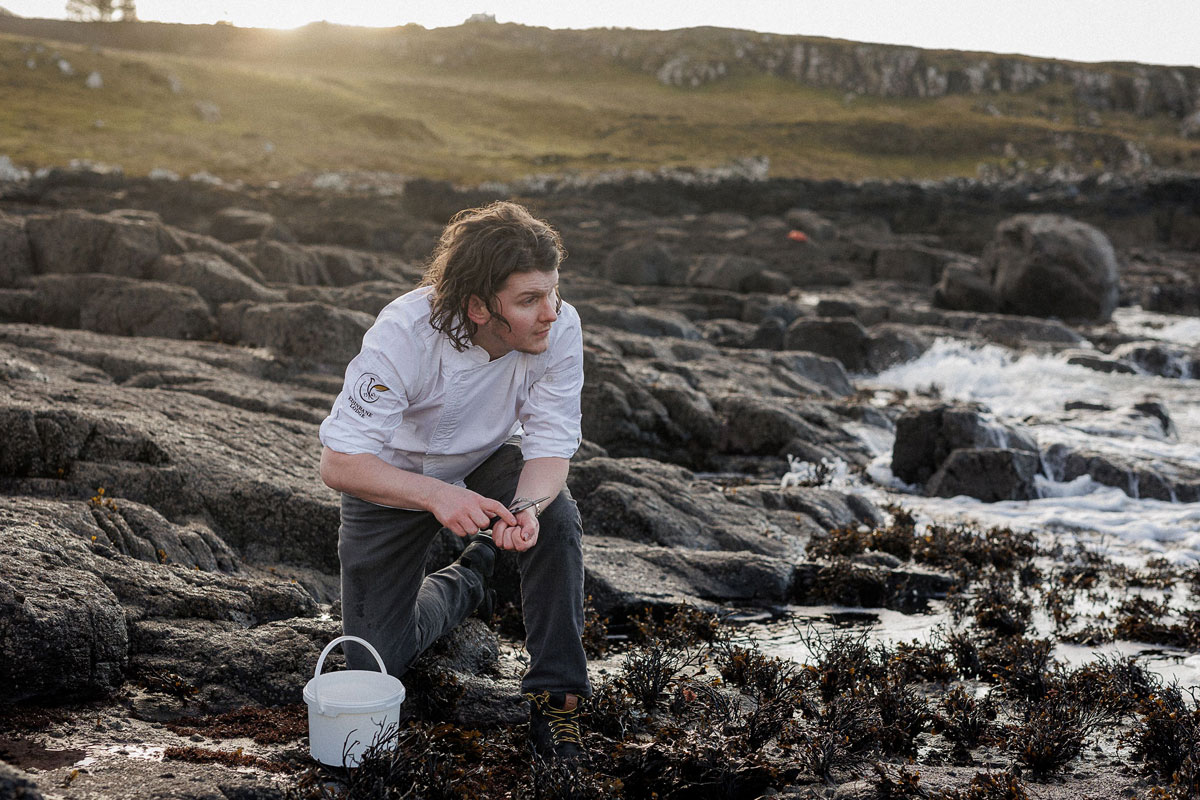 Calum, who was born and raised on Skye, sources produce from a community of family and friends, who share the same values and commitment to the produce and make the most of the island’s crofts, seas, and artisan production.