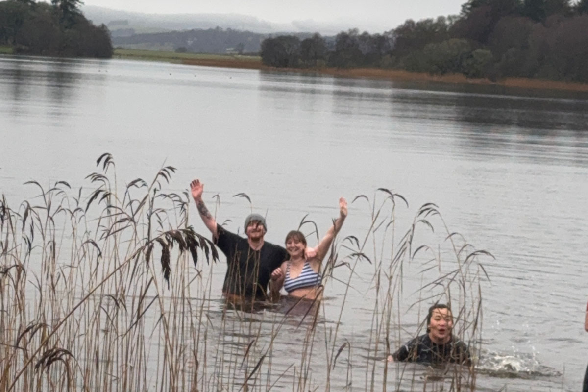 On New Year’s Day, eighteen brave souls took to the waters of the Lake of Menteith as part of a ‘Loony Dook’ organised by staff at the Karma Lake of Menteith Resort.