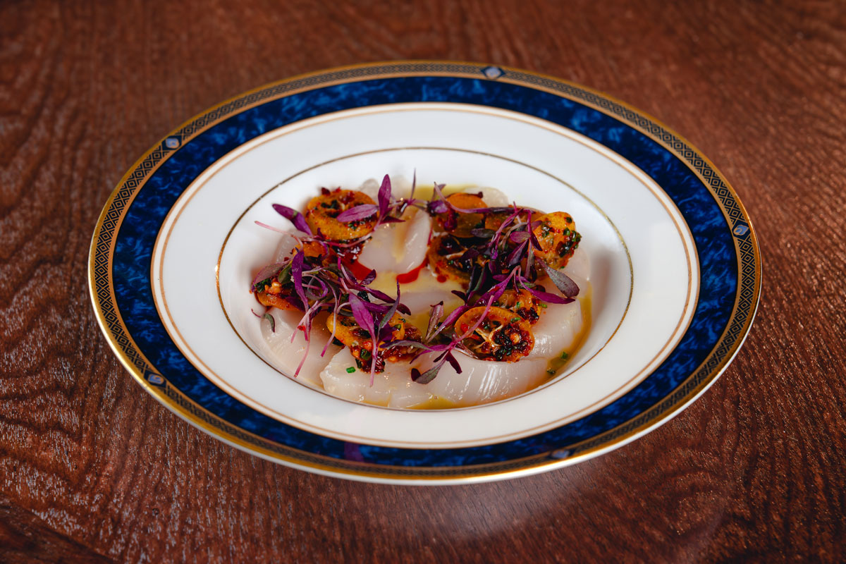 As a chef, Jun’s mission has been to replicate Asian flavours using Scottish produce. He pickles local crab apples in a pao cai-inspired brine to add acidity to grilled meats and slow-roasted pork and incorporates wild Scottish mint to his dishes to elevate spice.