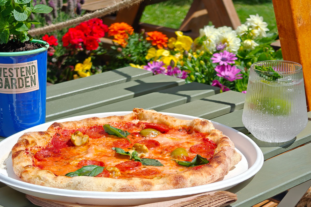 Open from now until mid-September, the outdoor venue features a fully licensed bar serving local beers, wines, and refreshing cocktails, along with a rotating pizzeria menu and seasonal treats, hot drinks, ice creams and weekend specials.