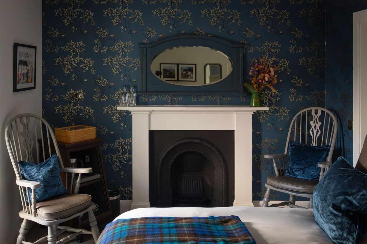 The guest rooms feature lavish beds, refurbished fireplaces, fireside chairs, antique lamps, and luxurious wall coverings. Ensuite bathrooms include walk-in showers and deep bathtubs, offering ‘a tranquil retreat after a day exploring the Highlands’.