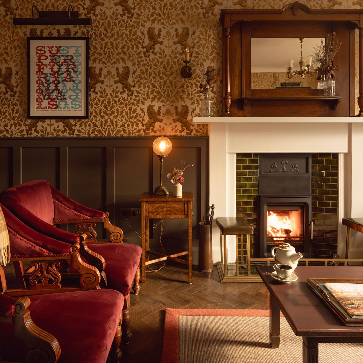 The property features three guest bedrooms, a guest lounge, and an 18-cover fine dining restaurant, adorned with Morris & Co. wallpaper, and Robert and Helen’s eclectic collection of music concert posters, a nod to their background in live music promotion across Scotland.