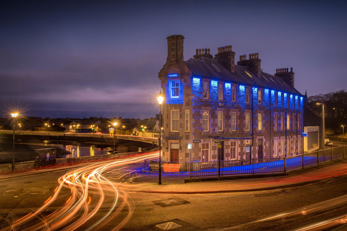 Built in 1883, Mackays Hotel is a traditional stone-built property containing a bistro, whisky bar, breakfast room, and function rooms with a capacity of 160 guests.