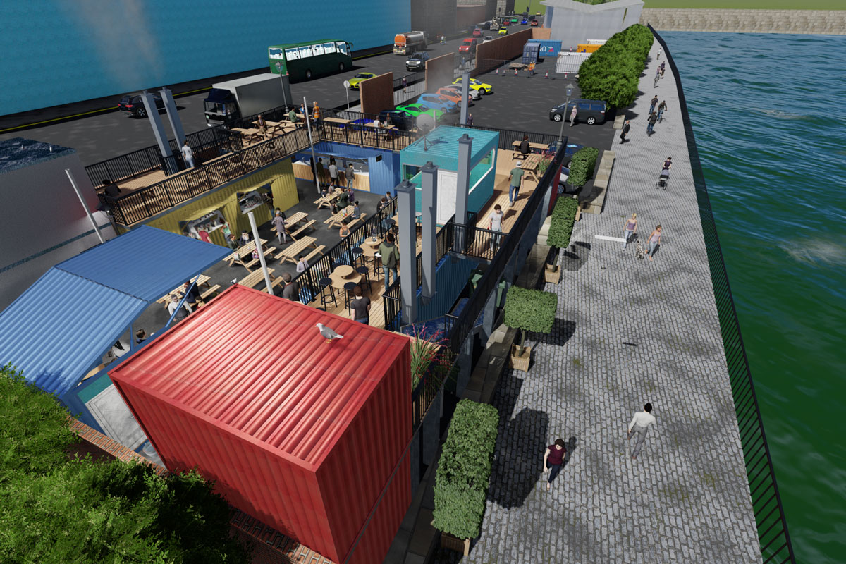 The plan had been to open the new outdoor food, drink and events destination at the start of the summer, but the schedule slipped as the required containers failed to appear at the prepped riverside site neighbouring the Grosvenor Casino.