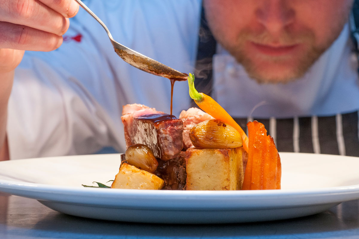 Venison is sourced directly from Kildrummy Estate, vegetables and herbs from a Huntly allotment and the inn’s own gardens, while local butchers, cheesemakers and dairies supply much of the menu.