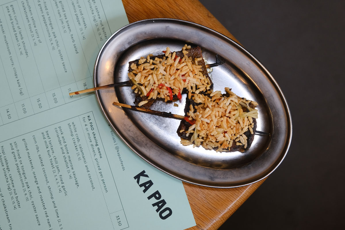 The menu promises to showcas Ka Pao’s bold flavours – from delicate White crab with calamansi and coconut shrimp crackers, pork and bone marrow stuffed chicken wing with oyster glazed sauce, through to a Southern yellow curry of Gigha halibut.