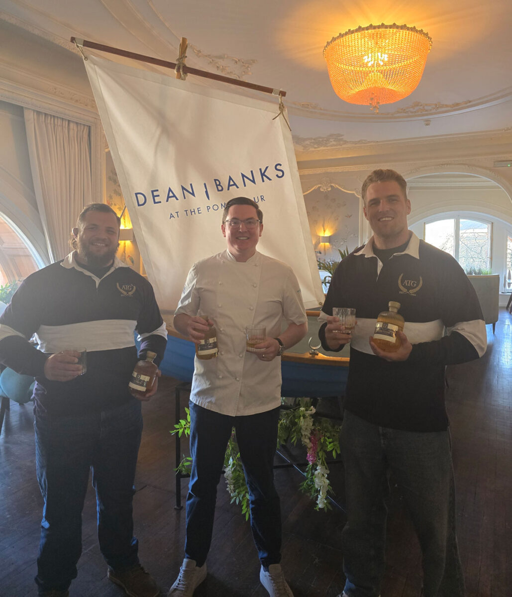 Scots chef Dean Banks has joined Scotland rugby team stars, Duhan Van de Merwe and Pierre Schoeman, in a partnership backing the players’ single malt Scotch whisky, Hirundine.