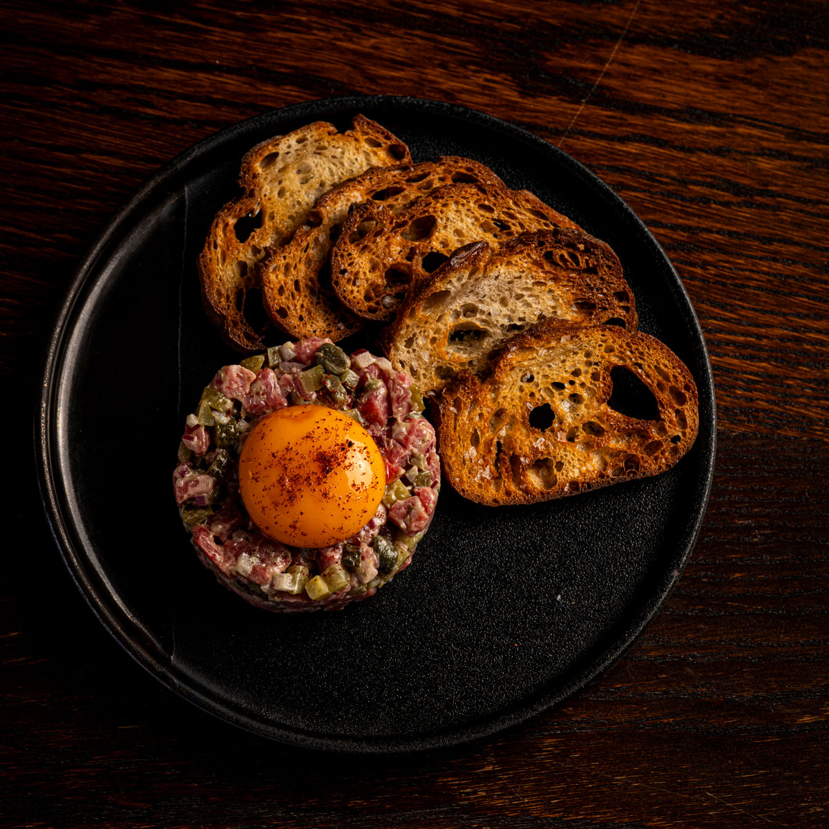 Calvert’s opening menu is described as a mix of comfort and creativity, from a colcannon patty with burrata to Aberdeen Angus tartare and chicken tikka arancini.